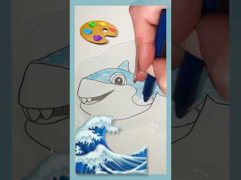 Baby Shark Easy Drawing for Kids! Real Water🦈! #shorts
